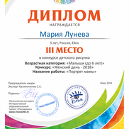 3 место в конкурсе "Конкурс детского рисунка "Женский день - 2018""