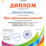 Приз зрительских симпатий в конкурсе "Конкурс детского рисунка “Отдых Мечты - 2018”"