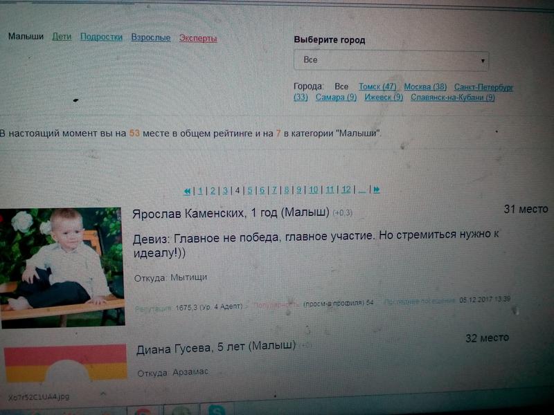Вот. Написано,что Ярослав на 7 месте в категории Малыши, а отображается 31 место, но а на 6 и 7 месте там вообще дети с более низкими рейтингами.