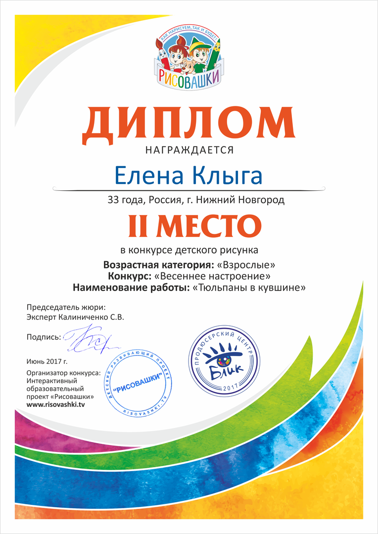 2 место в конкурсе "Конкурс рисунка "Осенний листопад 2017""