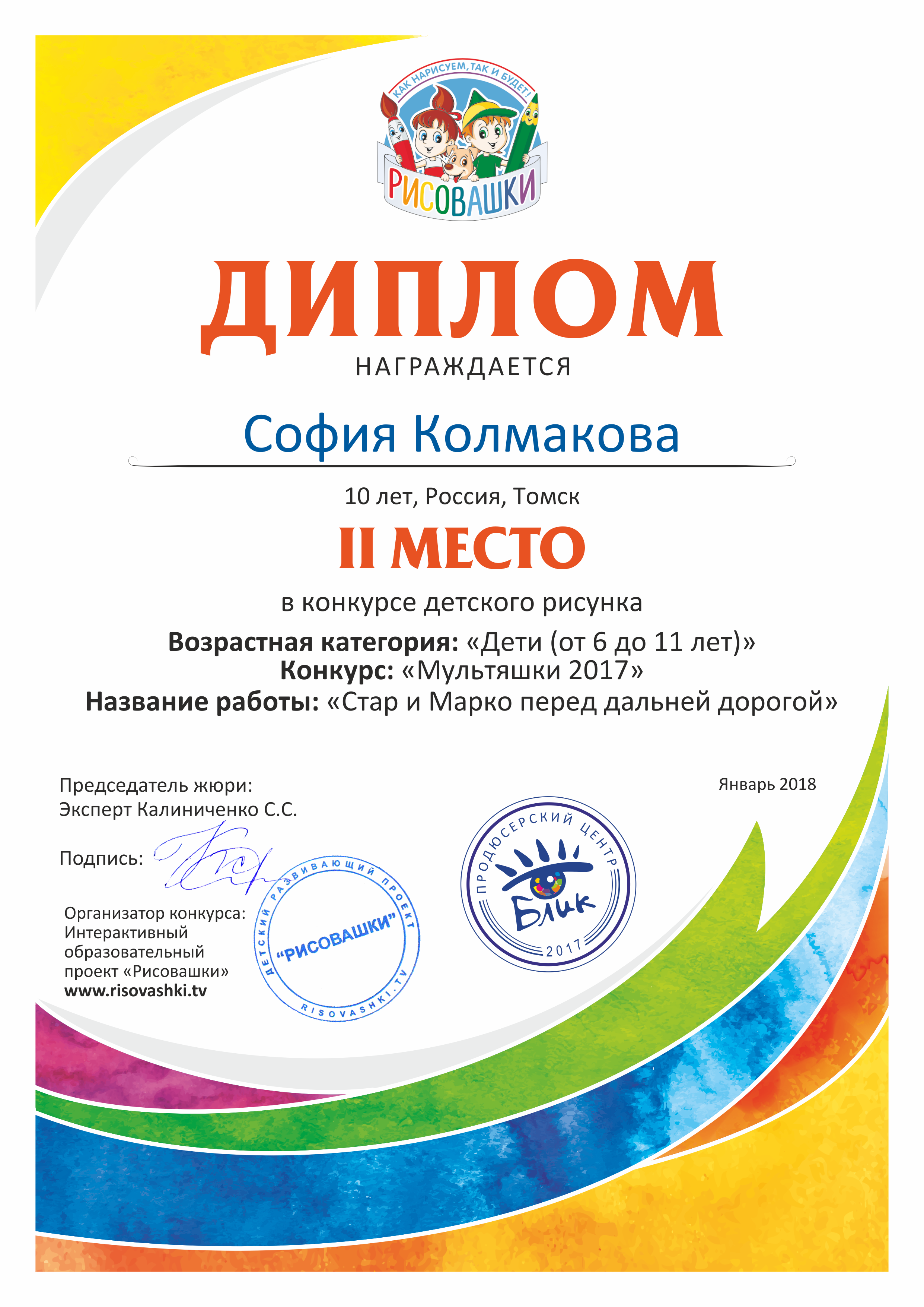2 место в конкурсе "Конкурс детского рисунка "Мультяшки 2017""