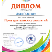 Приз зрительских симпатий в конкурсе "Конкурс детского рисунка "Мультяшки 2017""