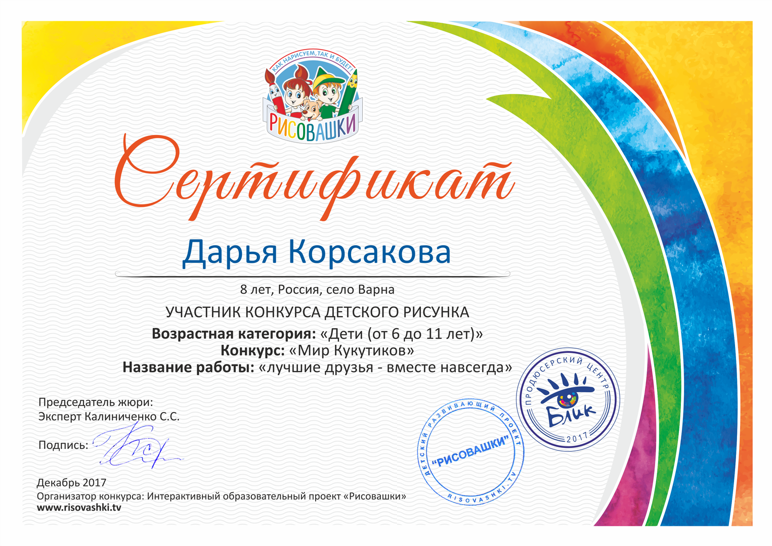 За участие в конкурсе "Конкурс детского рисунка "Мир Кукутиков""