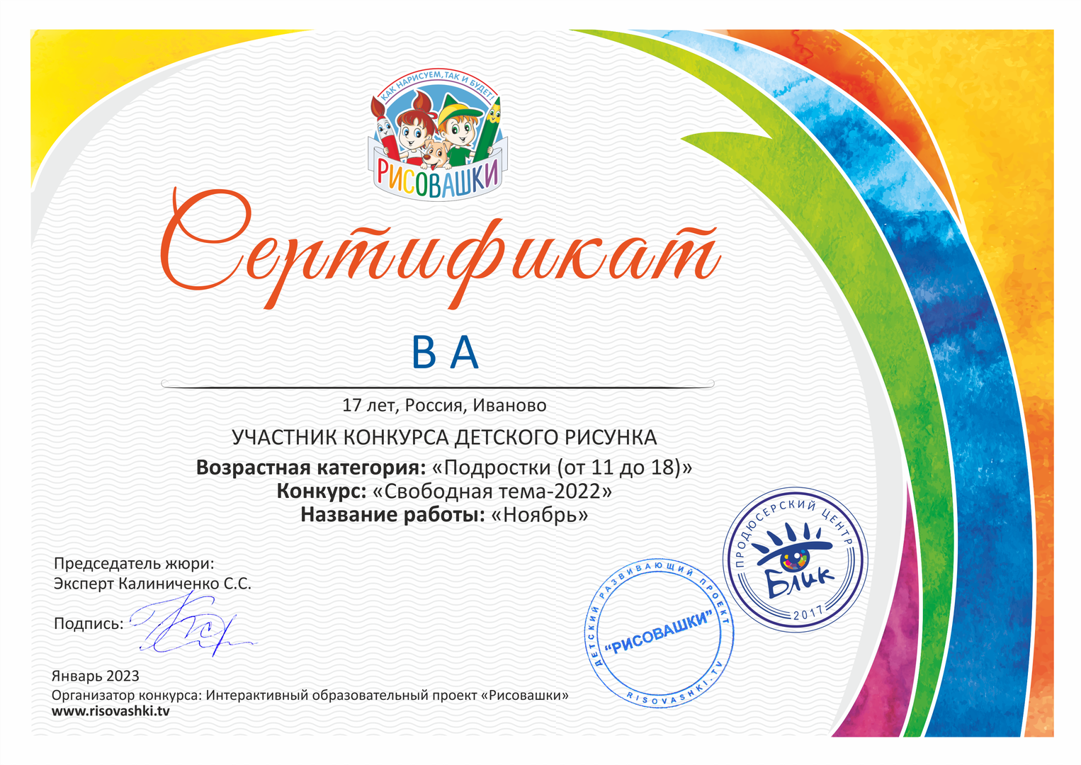 За участие в конкурсе "Конкурс творческого рисунка “Свободная тема-2022”"