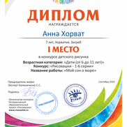 1 место в конкурсе "Конкурс детского рисунка "Рисовашки - 1-6 серии""